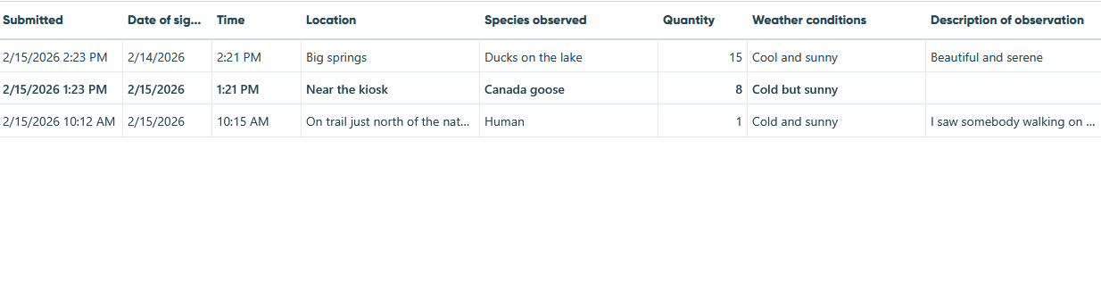 Sightings list: